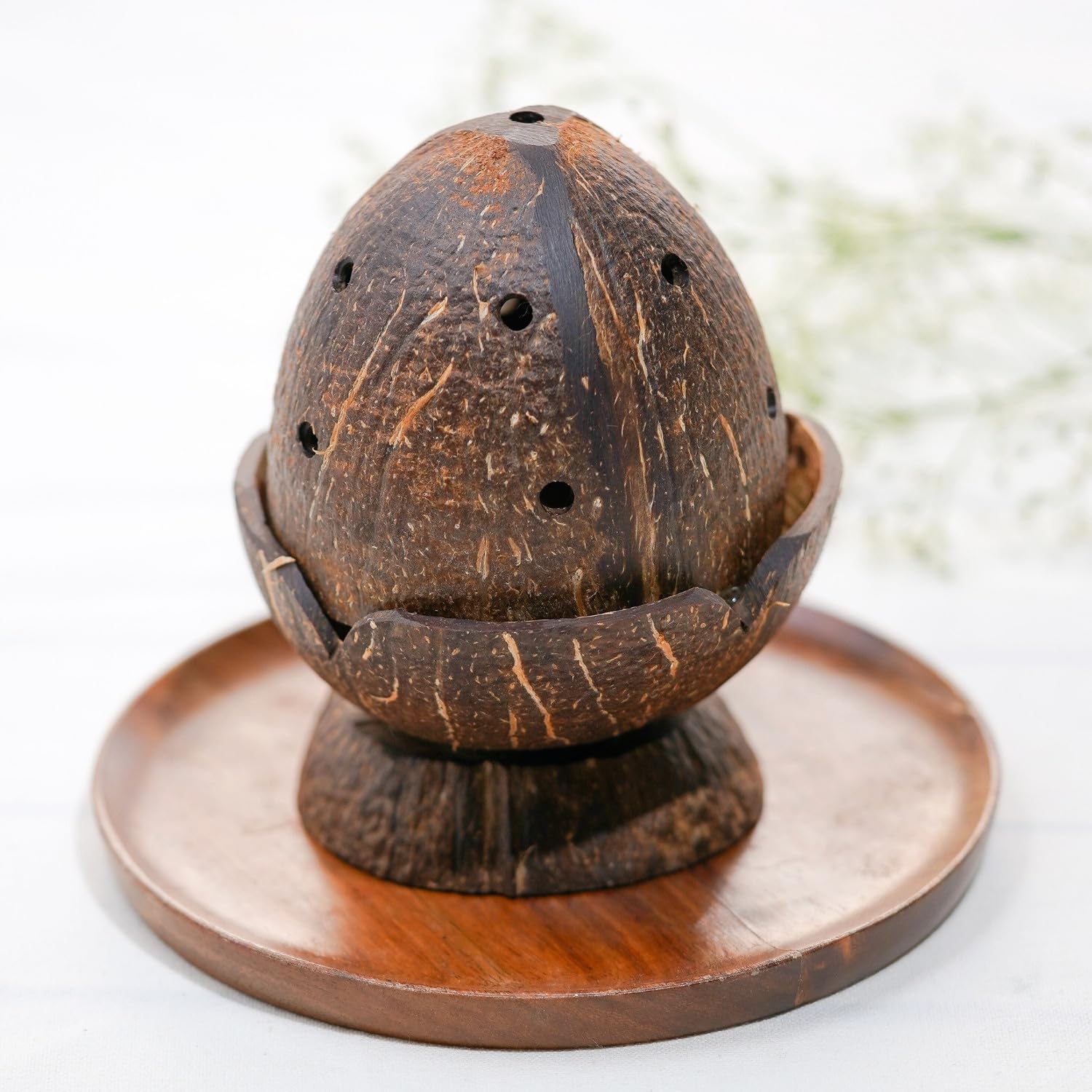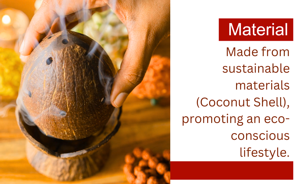 - HANDCRAFTED: Each dhoob batti stand/holder is meticulously handmade from natural coconut shells and wood by skilled artisans.